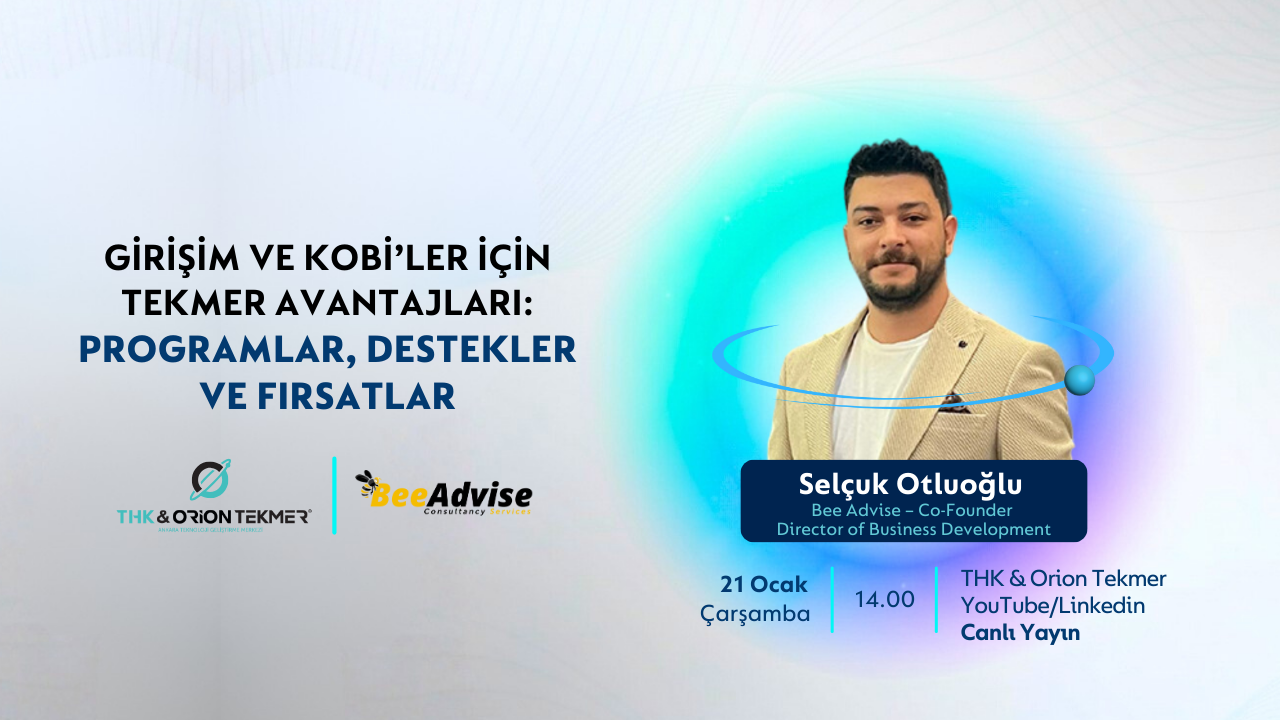 Bee Advise Kurucu Ortağı ve İş Geliştirme Direktörü Selçuk Otluoğlu’nun konuk olacağı bu özel oturumda; sadece teşvikler değil, bir firmanın kurulum aşamasından uluslararasılaşma sürecine kadar olan yolculuğu mercek altına alınacak. Webinar, “Doğru yapılandırma, bir firmanın ömrünü ve başarı şansını nasıl artırır?” sorusuna yanıt arayacak.